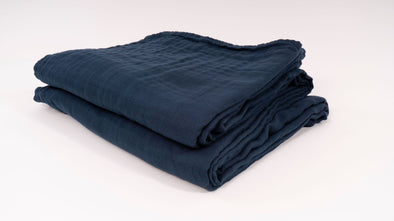 All-Season Organic Muslin Throw in Navy