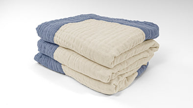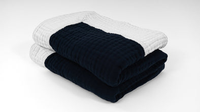 All-Season Organic Gauze Throw in Reversible Navy & Snow