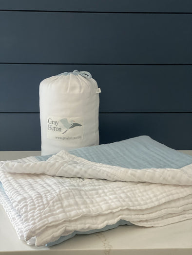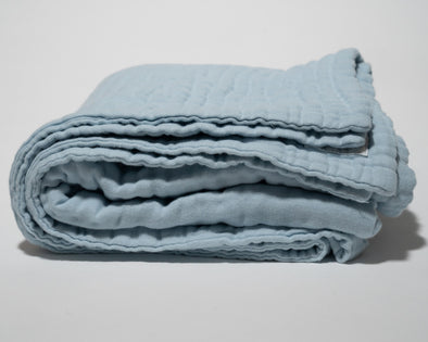 Summer-Weight Organic Muslin Throw in Sky