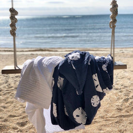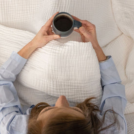 This is a truly "whisper weight" version of our original 8 layer blanket. It will feel more like a flannel sheet, but soooo much more breathable. As a throw it is perfect on the couch with its unique texture and buttery feel. On the bed, it is meant to be used as a flat sheet, as a layering blanket, or as a quilt in hot climates with the windows open. Why? You can't find a softer gauze material. It took us over a year just to settle on this fabric. How? Grown organically without pesticides or harmful chemicals on any step of the process. The Feel Good? Knowing that your buttery soft blanket is made entirely of healthy GOTS certified organic muslin and organic dye that benefits your body and the planet. Designed in Boston and made in India with respect for the earth, for all of the people who work on the supply chain and for you and your family. Thickness: 4 layers of woven GOTS certified organic gauze Size: 82"x64" after washing Color: Snow
