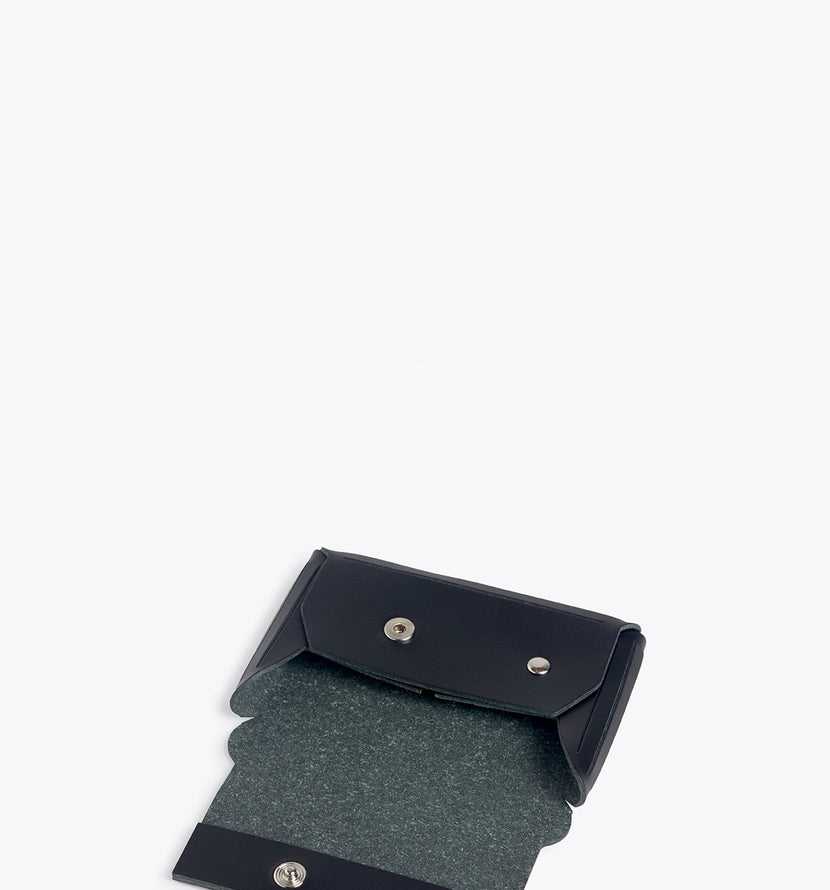 COIN CASE FEATURING A CONTRASTING STRIPE FRONT ACCENT AND SILVER METAL SNAP HARDWARE. HANDCRAFTED WITH RECYCLED VEGAN MATERIAL, THIS CASE IS MADE USING AN ORIGAMI FOLDING TECHNIQUE THAT DOES NOT UTILIZE ANY STITCHING. MORE DETAILS DIMENSIONS: 4 x 3 INCHES / 10.2 x 7.6 CM MADE IN USA MADE TO ORDER. PLEASE ALLOW 1 TO 3 BUSINESS DAYS FOR YOUR ORDER TO SHIP.