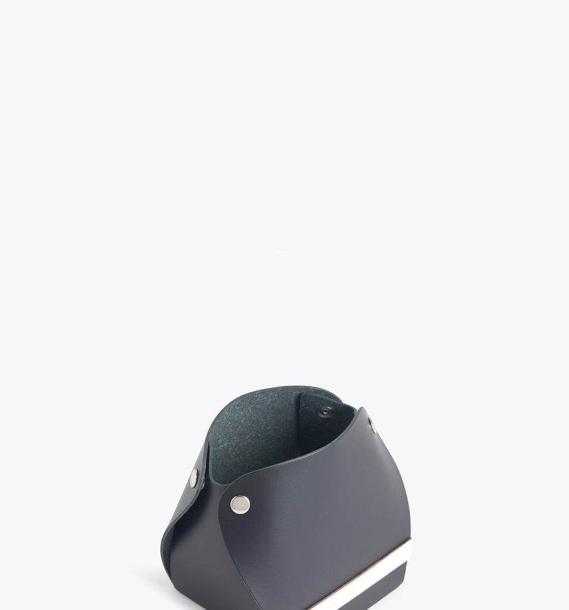 PEN HOLDER FEATURING A CONTRASTING STRIPE FRONT ACCENT AND SILVER METAL SNAP HARDWARE. HANDCRAFTED WITH RECYCLED VEGAN MATERIAL, THIS CASE IS MADE USING AN ORIGAMI FOLDING TECHNIQUE THAT DOES NOT UTILIZE ANY STITCHING. MORE DETAILS DIMENSIONS: 4 x 4 INCHES / 10.2 x 10.2 CM MADE IN USA MADE TO ORDER. PLEASE ALLOW 1 TO 3 BUSINESS DAYS FOR YOUR ORDER TO SHIP.