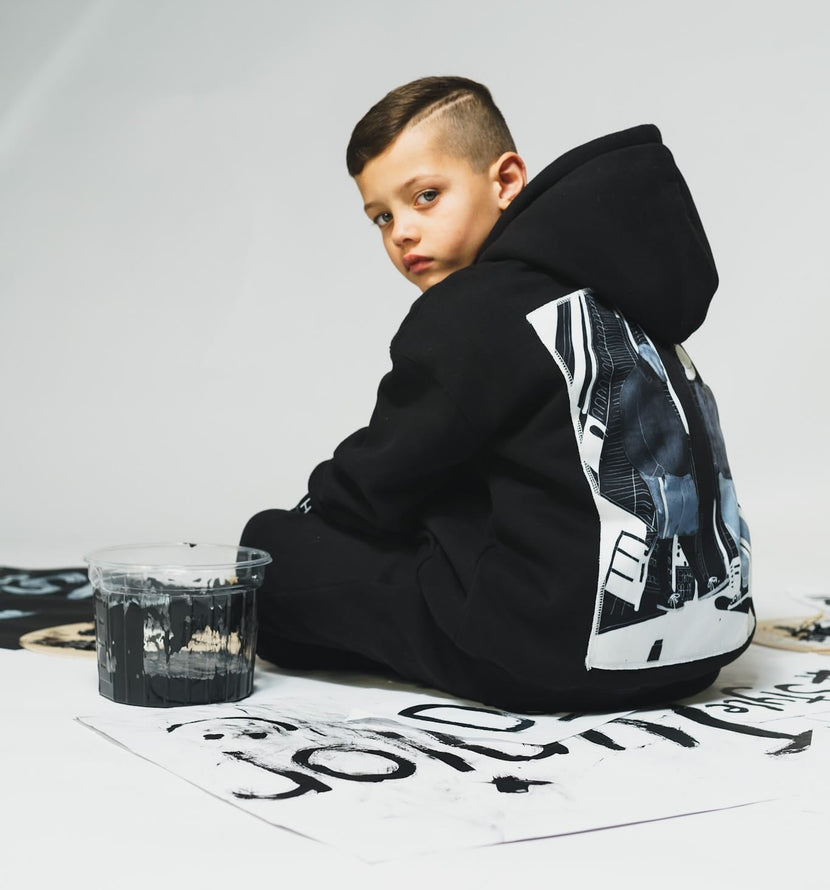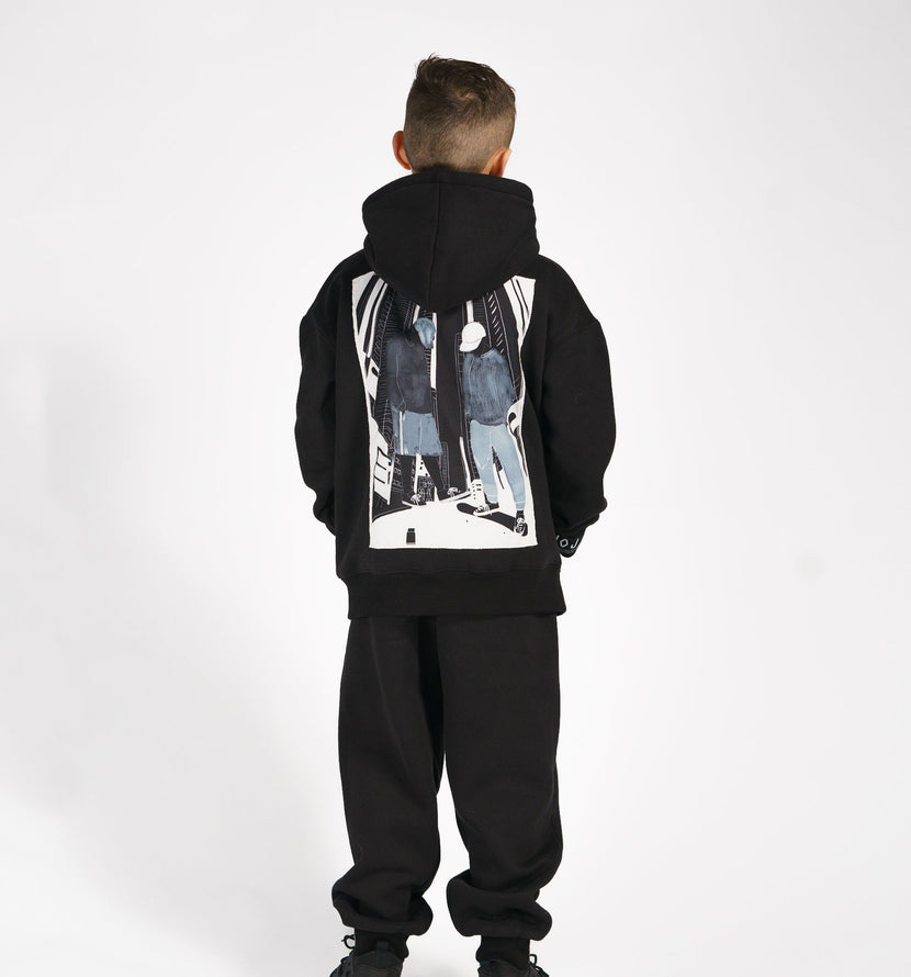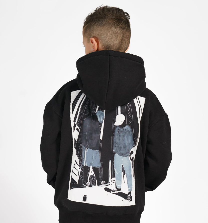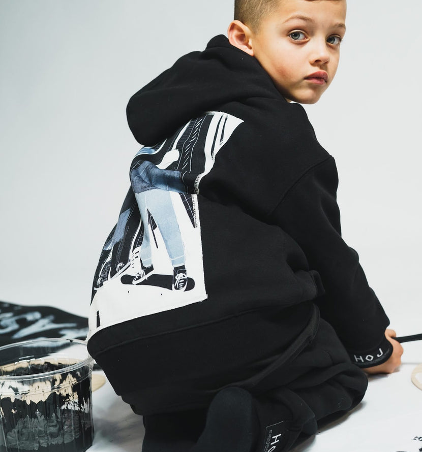 HOJ BOYS BLACK ILLUSTRATED CANVAS HOODIE