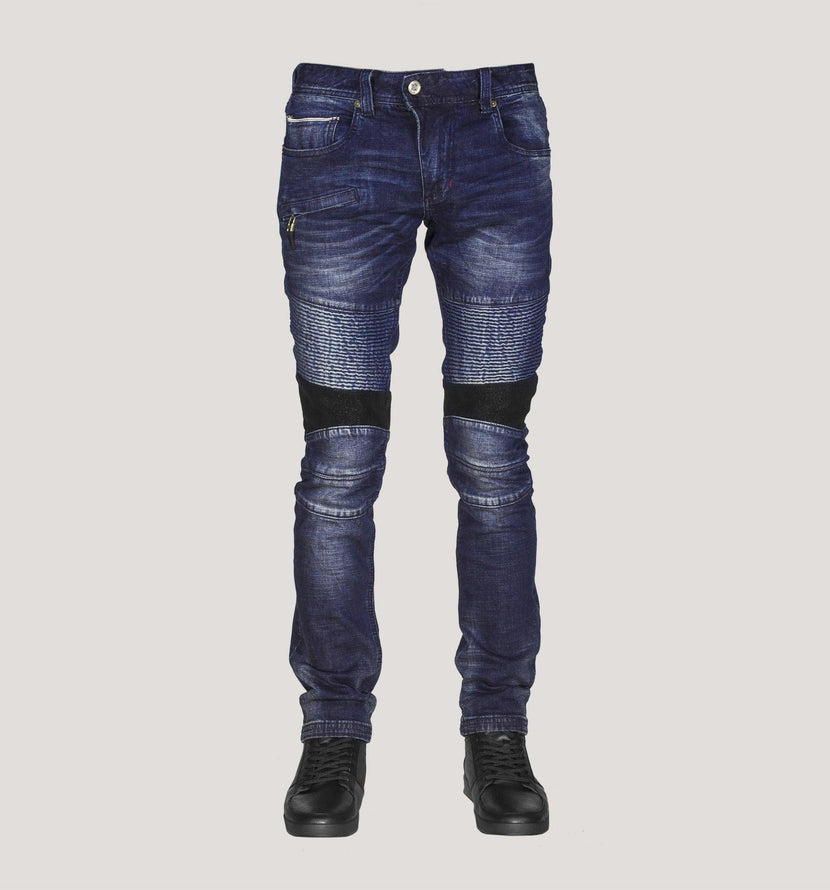 Denim/ Jeans/ Selvedge/ Selvedge denim An effortlessly cool edge to your off-duty edit with DKShin's Moto jeans. Crafted from stretch denim, this design is accented with special treatment genuine leather patches on the knees, biker-inspired stitching and a concealed hook and zip fastening. Detailed with subtle fading, they are washed for an exceptionally soft finish and woven with a touch of stretch to fit comfortably without feeling too snug. Finished with all these detailing, style yours with a simple white T-shirt and slip-on sneakers. Details Crafted from stretch denim, this design is accented with special treatment genuine leather patches on the knees, biker-inspired stitching and a concealed hook and zip fastening. Zip fly with button closure Five-pocket style with Signature Selvedge coin pocket. Japanese Selvedge Denim Button and concealed zip fastening at front Signature Selvedge Belt loop on the Center Back Designer wash Light Blue denim Fit Slim Fit Detailed with subtle fading, they are washed for an exceptionally soft finish and woven with a touch of stretch to fit comfortably without feeling too snug. Features & Details 11.5 ounces Japanese Selvedge 97% Cotton 3% Polyurethane Model is wearing size 32X34; 10" rise, 34" inseam, and 13 1/2" leg opening selvedge fabric will stretch (2 inch) on the (waist/ hip/ thigh). Fit Guide Shipping DOMESTIC SHIPPING Shipping Method Flat Rate Estimated Delivery Economy $9.99 (U.S. Only) Delivery occurs 5 to 8 business days Standard $25 (U.S. Only) Delivery occurs 3 to 4 business days Express $45 (U.S. Only) Delivery occurs 1 to 2 business day INTERNATIONAL SHIPPING WHO IS RESPONSIBLE FOR DUTIES AND TAXES?All applicable taxes (VAT) and duties (customs tariffs) will be calculated and displayed during checkout. They are based on the purchased product's country of origin and the classification of that product in accordance with a harmonized system used by the destination country. Country / Region Delivery Time Cost United Kingdom Standard: 7-10 Business Days Express: 4-8 Business Days Flat Rate Shipping Canada Standard: 4-14 Business Days Express: 3-7 Business Days Flat Rate Shipping Australia Standard: 7-14 Business Days Express: 5-9 Business Days Flat Rate Shipping Returns At Don and Swagger Co., we respect and value every customer. Because your trust is important to us, we want you to be completely happy with every purchase. If you are not satisfied, for any reason, we are glad to accept returns of saleable merchandise for a full refund or exchange. Refunds will be credited to the original form of payment. The following rules apply: Returns are accepted within 30 days of receipt. Returned merchandise should be in the same condition as when you received it, unworn, undamaged, saleable, with original tags and packaging (if applicable) Don & Swagger Co. Tel: 1-484-550-7062 Email: Returns@donandswagger.com 2880 Center Valley Pkwy Suite# 608 Center Valley, PA 18034 U.S.A.