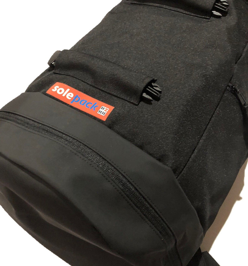 The OMEGA remains the mother ship to all our patented SP-1 detachable shoe carriers. A stand alone backpack in its own right but with attachments specifically for the SP-1s to attach. With a 30L capacity, its designed to keep you well packed for a busy day or a long weekend trip. Features include: retractable front buckles for SP-1 attachment, rear tunnels for maximal backstrap security, top loading bag with a zipper pocket on the lid and on the side, a side water bottle mesh pocket, chest strap, and a multipurpose bottom compartment for anything from a basketball to dirty clothes to another pair of shoes or slides. We added a rubber coated bottom for the times you have to lay your bag on the ground- inspired by our travels in/around NYC. TRULY A BACKPACK BUILT LIKE NO OTHER. (*SP-1s NOT INCLUDED) DETAILS: Capacity: 30L Dimensions: 20L x 12W x 8H Materials: 800D Poly Color: BLACK CHECK THE VIDEO: