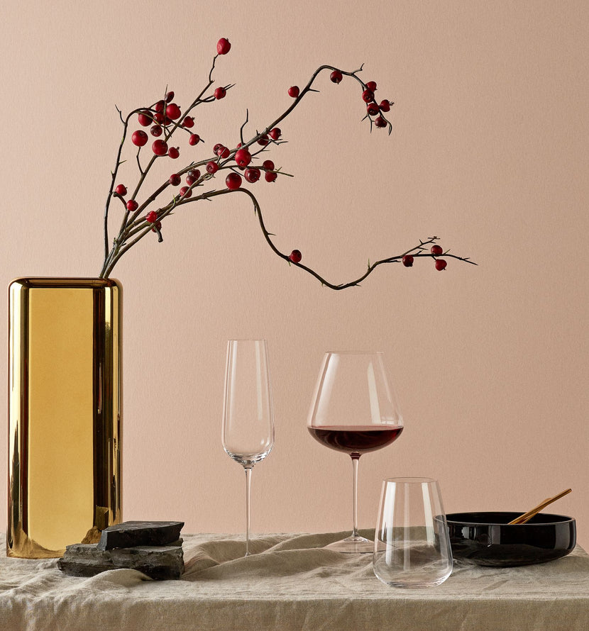 by NUDE Design Team This medium red wine glass presents a generous bowl that liberates the flavours and aromas, as well as tapered sides and a narrow rim that intensify the bouquet. The unique shape directs the wine to the centre of the palate to enhances its silky texture, velvety finish and all-around elegance. The NUDE Stem Zero collection is the world’s toughest, yet incredibly fine lead-free crystal range — made using our ‘Ion Shielding’ Technology.