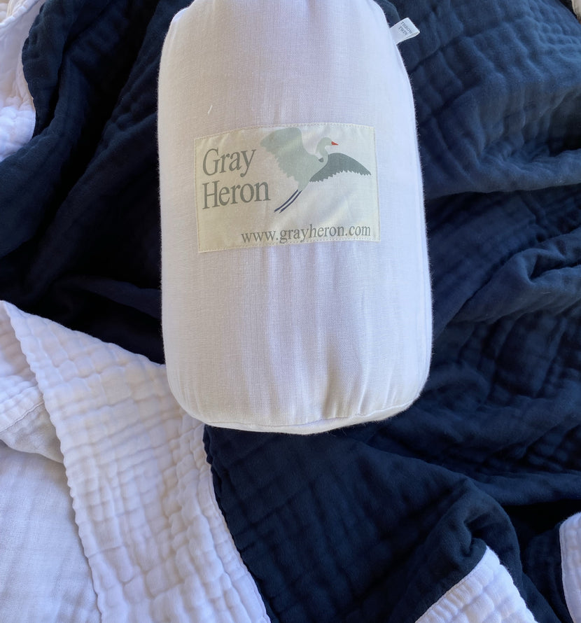All-Season Organic Gauze Throw in Reversible Navy & Snow